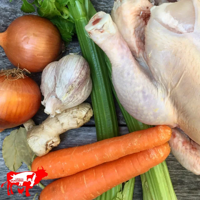 After 90 minutes, strain the stock into a smaller pot (retaining the chicken and vegetables) and place back onto the heat bringing it to a rapid boil until the stock is reduced by half (this will intensify the flavour of the stock). This should take around 15-20 minutes.