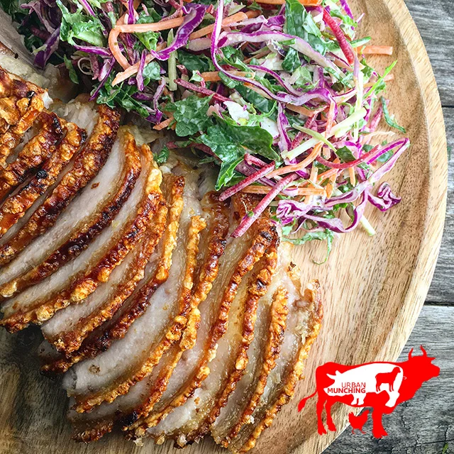 - 1.5kg (3.3Lb) Free Range Pork Belly, Loin or Shoulder (with skin on) If you want to brine it, check out our brine recipe